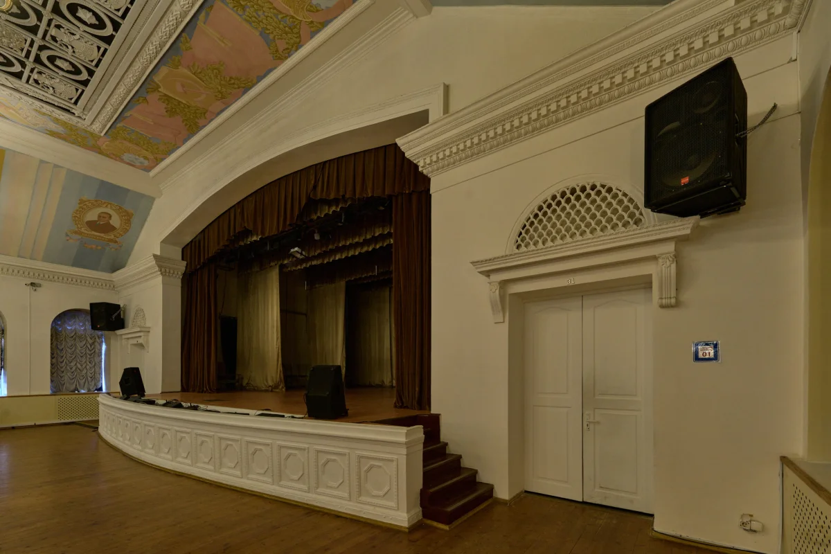 Это Г-образное здание с двумя входами, ближе к основанию «ножки» находится крыльцо ресторана (первоначально столовой), а место примыкания горизонтали – четырехколонный портик и главный вход в сам клуб. Фасад вдоль Вокзальной улицы прорезан двумя рядами окон, нижний прямоугольных, верхний – арочных. Такая монотонность рисунка фасада сдвигает главный акцент на портик из четырех антовых колонн с пышными капителями и небольшим фронтоном. Кроме портика, убранство фасадов здания очень бедное для послевоенного советского неоклассицизма, что, впрочем, частично искупается внутренней отделкой, особенно в зрительном зале. На фасадах же выделяются лишь профилированные архивольты арочных окон, небольшой карниз с иониками и, собственно, портик. Внутри же сохранились террациевые полы в цветную клетку, бронзовые многорожковые люстры, карнизы с дентикулами и модульонами, а в зрительном зале – потолок с росписями.
