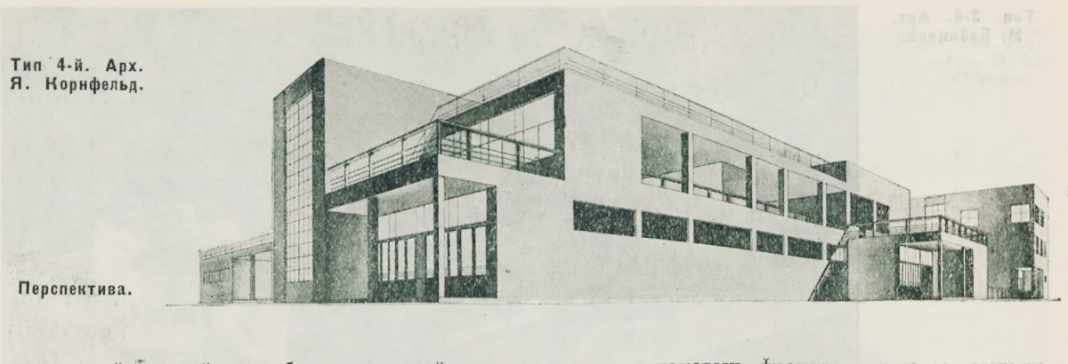 С сентября 1927 года Я. А. Корнфельд осуществлял надзор за строительством клубных зданий в Комиссии профсоюза текстильщиков и занимался собственным проектированием. Летом 1927 года он работает над заказом проекта нового Клуба 4-го типа на 1500 мест для текстильных фабрик в Орехово-Зуево и Раменском. После небольшого конкурса комиссией были утверждены два варианта — удовлетворительными и пригодными для типового строительства после внесенных изменений, были признаны проекты архитекторов и В. А. Щуко и Я. А. Корнфельда, поскольку последний был разработан с учетом замечаний комиссии, в планировочном решении оба варианта имеют сходные решения.