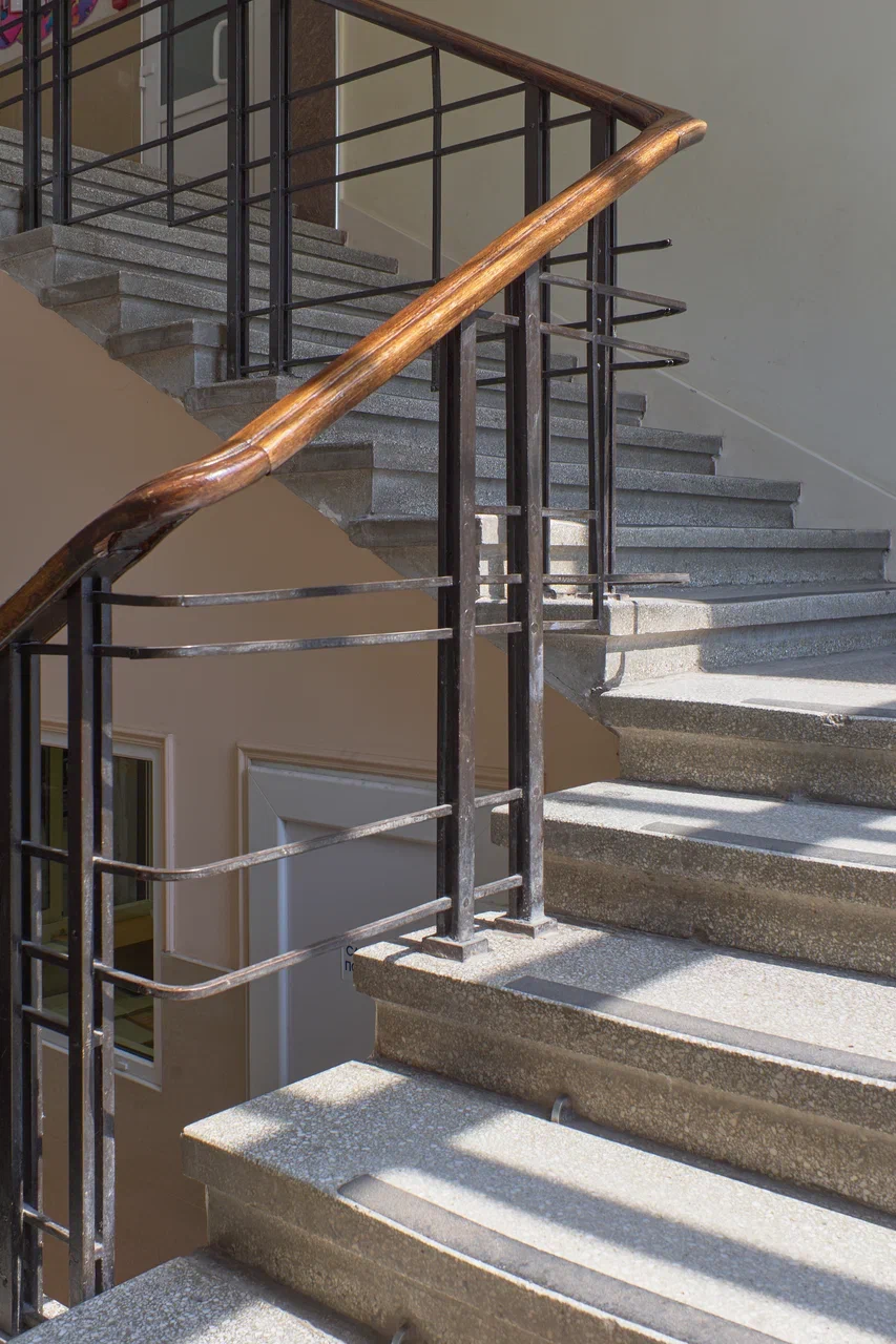 Клуб рассчитан на пространственное восприятие. Каждый из четырех фасадов представляет законченную композицию, построенную на контрасте глухих стен и открытых террас, квадратных оконных проемов и ленточного остекления, на сочетаниях выступающих и утопленных разновеликих объемов.