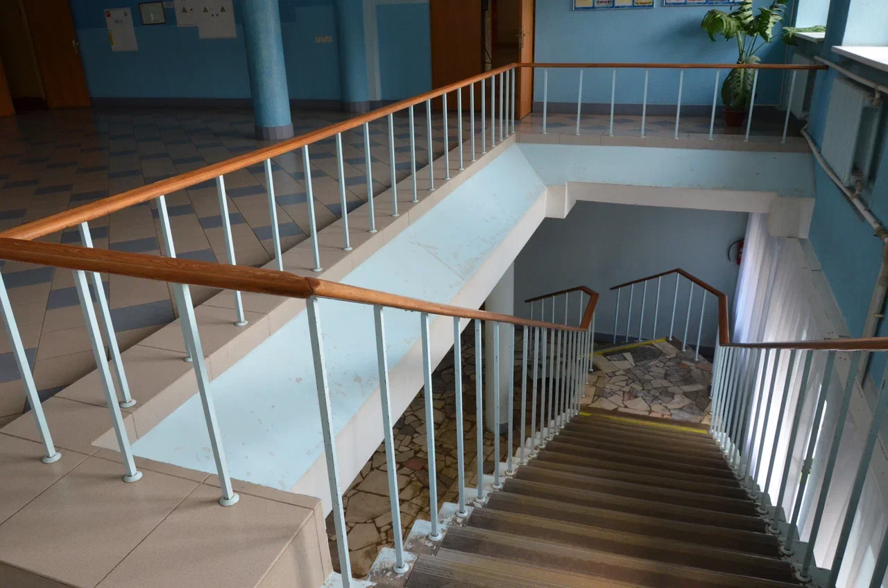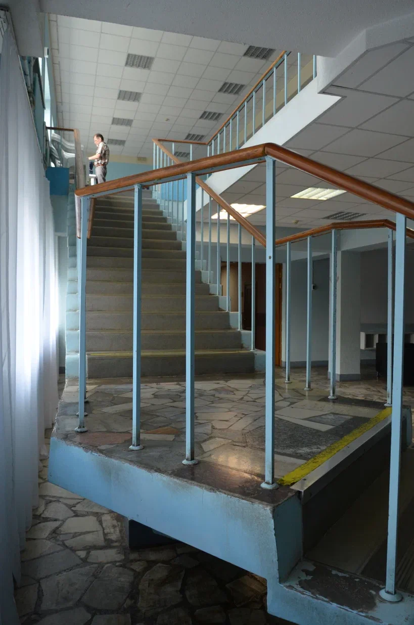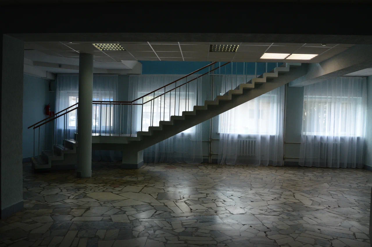 Слева от вестибюля — небольшой холл с отдельным гардеробом для посетителей клуба и лестницей. В первом этаже продольного корпуса находится библиотека с читальным залом, раздевалки и комнаты администрации, расположенные по двум сторонам коридора, из которого можно пройти в спортивный зал. За гардеробом, вдоль зрительного зала размещено книгохранилище и детская библиотека, гостиная, фотолаборатория и холл для игр. Театральное фойе находится в остекленном объеме на уровне второго этажа. Слева – кулуары с буфетом, малый зал и выход на балкон спортивного зала. Помещения вдоль продольной стены театрального корпуса заняты классами и комнатами для кружков. В торце перед второй лестницей помещен зал для репетиций.