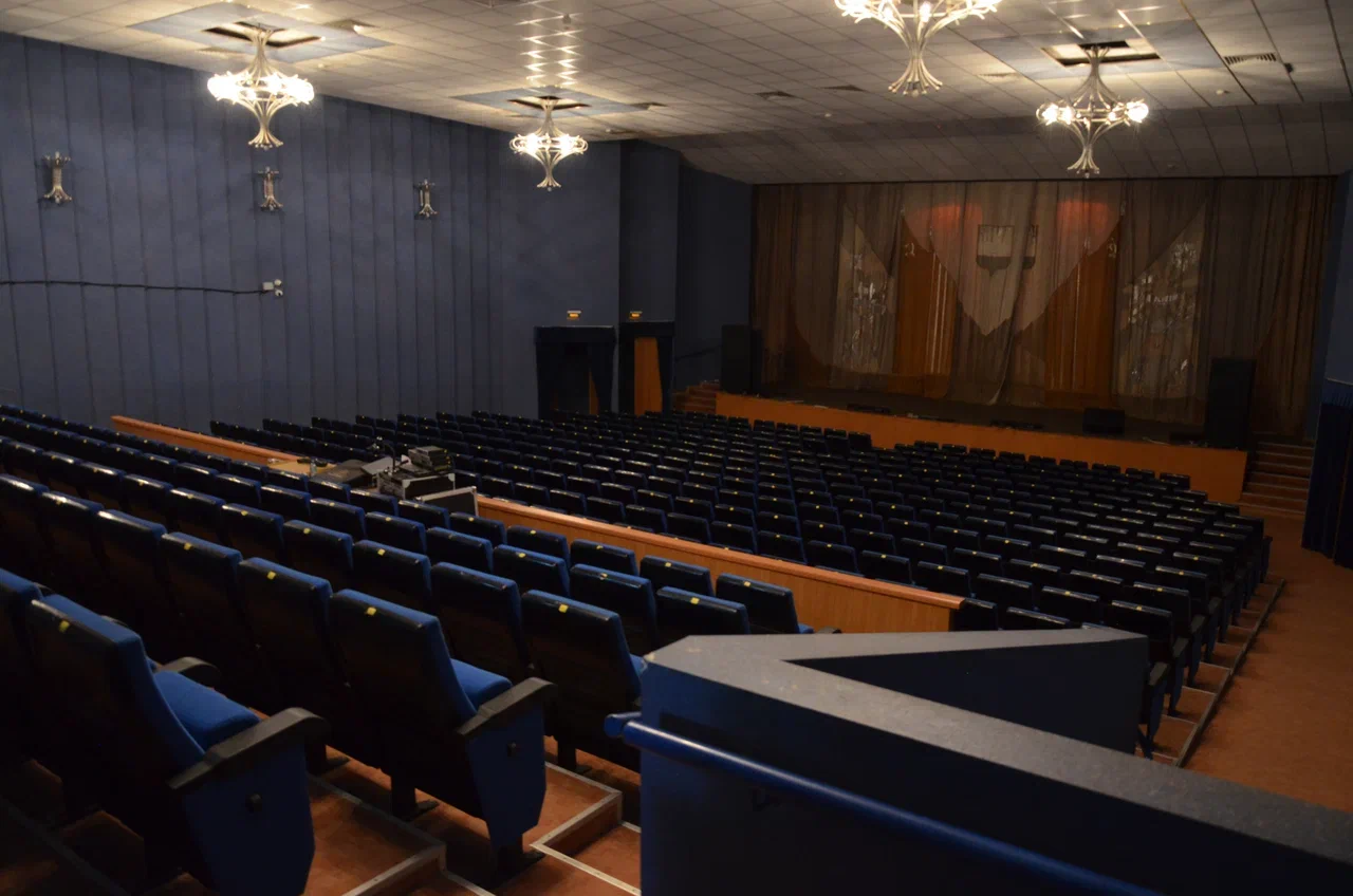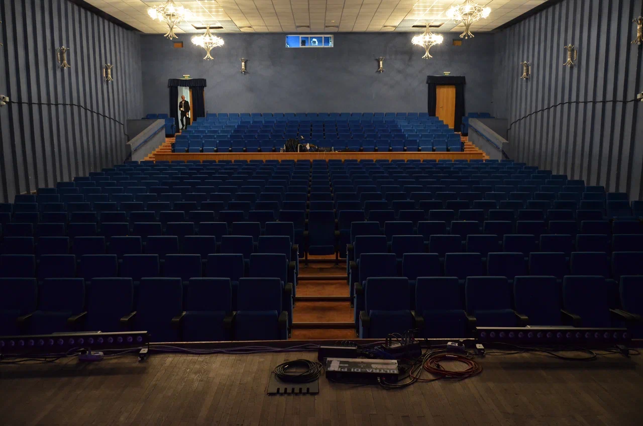 Планировка позволяет использовать театральную и клубную части, а также спортзал независимо друг от друга, для чего предусмотрены раздельные входы с улицы и коридоры. По проекту главный вход ведет в вестибюль с гардеробом и зрительный зал за ним. Зал вмещает почти 500 зрителей, входы расположены по двум сторонам от амфитеатра. Стены зала обшиты деревянными панелями. За сценой устроены помещения артистических гримерных и склада декораций.